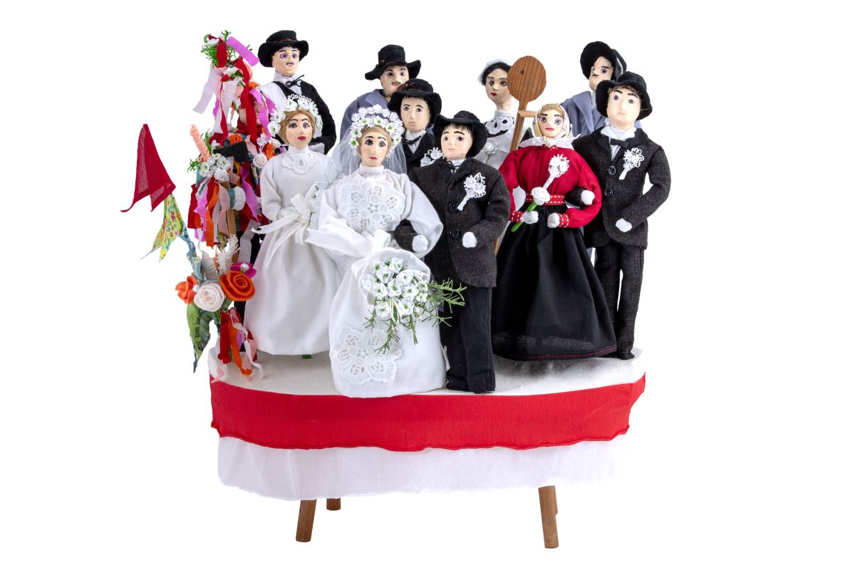 Okrasje se je nataknilo na ženitovanjski kruh, prikazuje pa nevesto in ženina, družico z drugom, starše, natakarja, kuharico, pozvačina in muzikanta. Leta 2024 so ga restavrirale članice muzejske skupine Rožice pod vodstvom Eme Lončar.