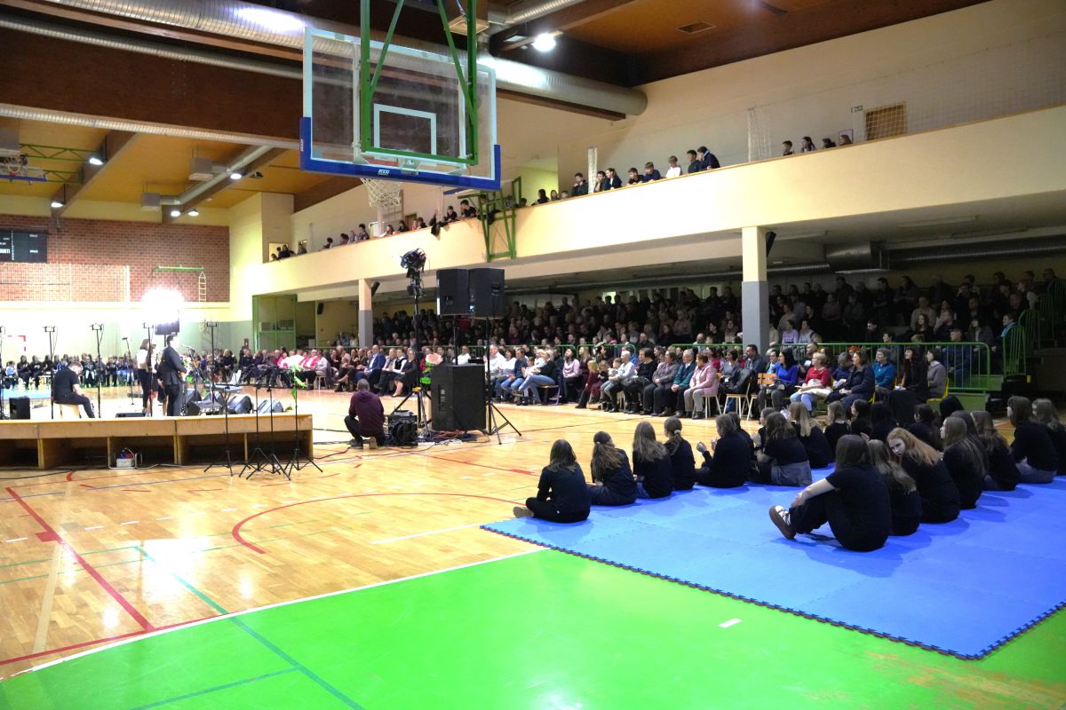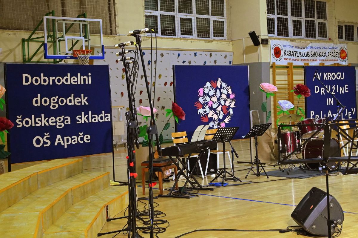 Prejšnji petek so v šolski športni dvorani v Apačah že tretjič izvedli dobrodelni dogodek šolskega sklada Osnovne šole Apače, tokrat z naslovom V krogu družine in prijateljev. Zbrane so v uvodu nagovorili župan Občine Apače Andrej Steyer, ravnateljica OŠ Apače Violeta Kardinar in predsednica šolskega sklada Irena Ivanek. Kot je povedala zadnja, slogan letošnjega večera ni bil izbran naključno. »V družini se vse začne. Tam naredimo prve korake, slišimo prve spodbudne besede. Tam se naučimo, da smo pomembni. Družina nam daje varnost, oporo in pogum, da si sploh upamo stopiti v svet. Prijatelji pa so tisti, ki nas na tej poti spremljajo. So tisti, ki nas slišijo tudi takrat, ko molčimo. Ki ostanejo, tudi ko ni preprosto. Ki verjamejo v nas – včasih še bolj, kot verjamemo sami vase. In prav šola je prostor, kjer se ti dve zgodbi pogosto prepletata. Otroci se tu učijo znanja, a hkrati odnosov. Kjer rastejo ne le kot učenci, ampak kot ljudje. V šoli nastajajo prijateljstva, ki pogosto trajajo celo življenje.«