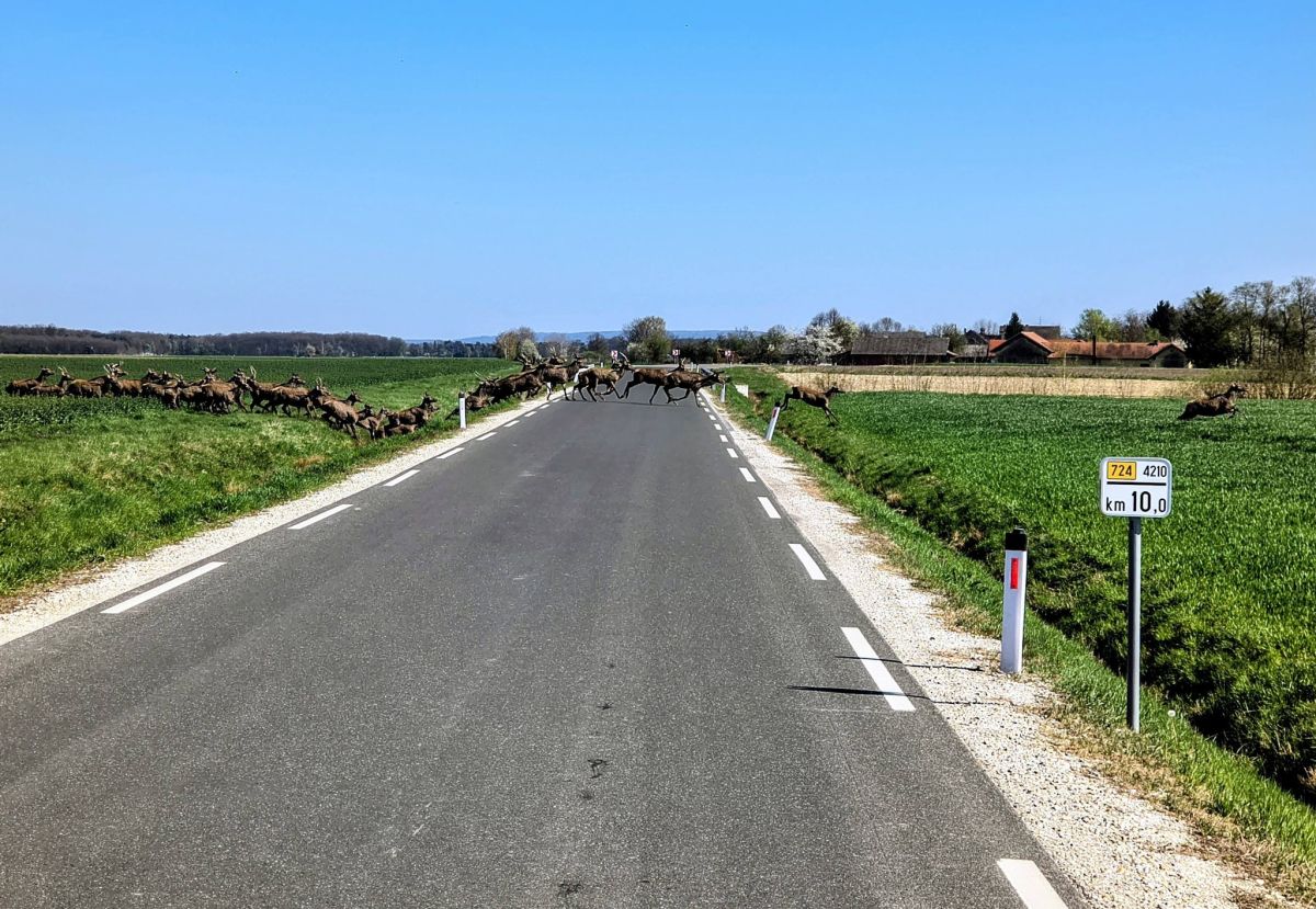 Med vožnjo skozi Kobilje so namreč s sopotniki videli zares veliko krdelo jelenov in košut, ki so preko njiv in ceste tekle na drugo stran. Prizor je, sodeč po zapisanem, uporabnika, ki je fotografije delil, zares navdušil, kot je namreč dodal, so prvič videli toliko divjadi na kupu.