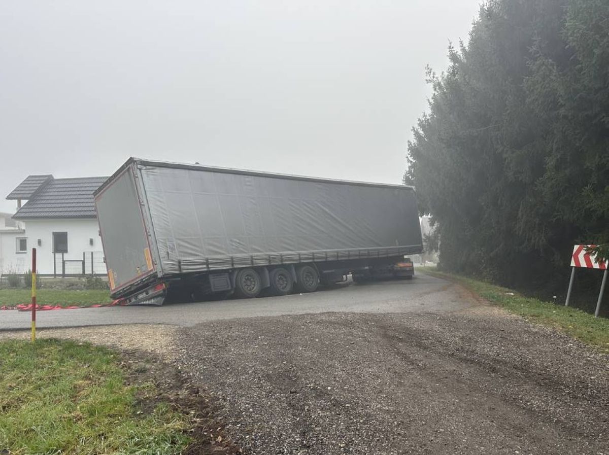 Nenavadna prometna nesreča, v Pince - Marofu se je zagozdilo tovorno vozilo