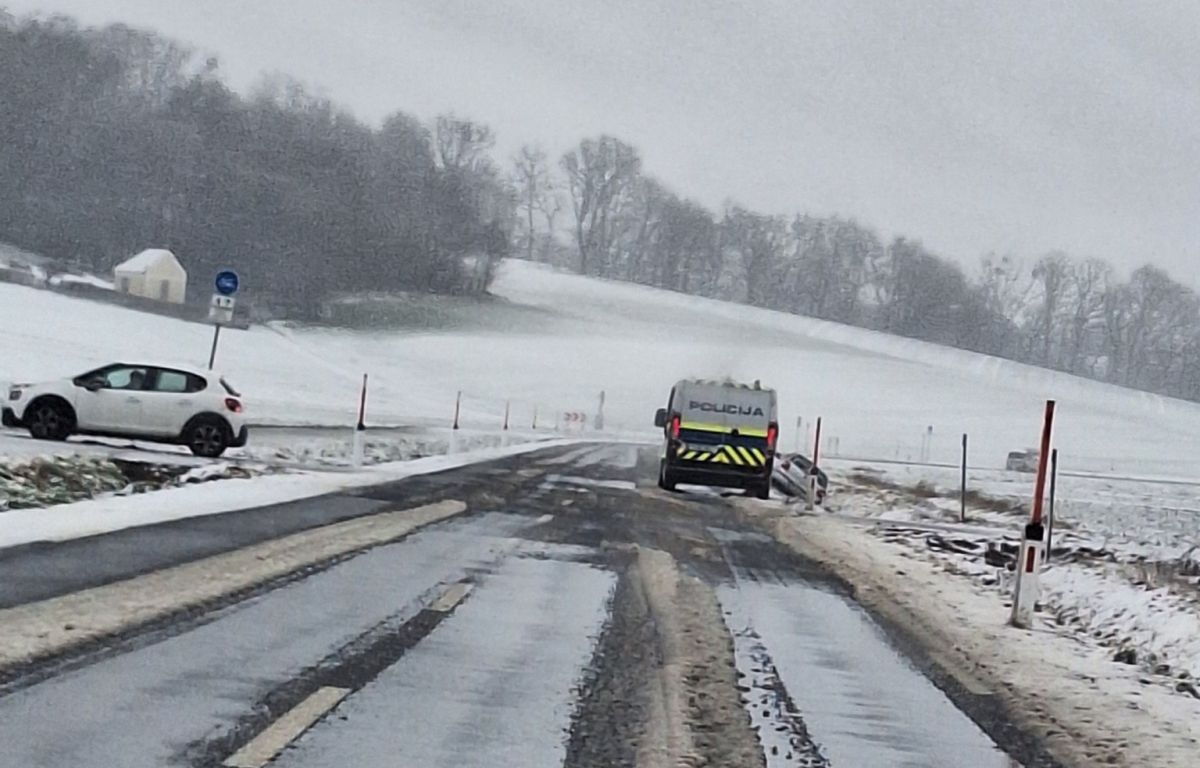 Na cesti Radovci - Grad je prišlo do zdrsa tovornjaka, pri pokopališču v Nemčavcih pa je v jarku pristalo osebno vozilo.