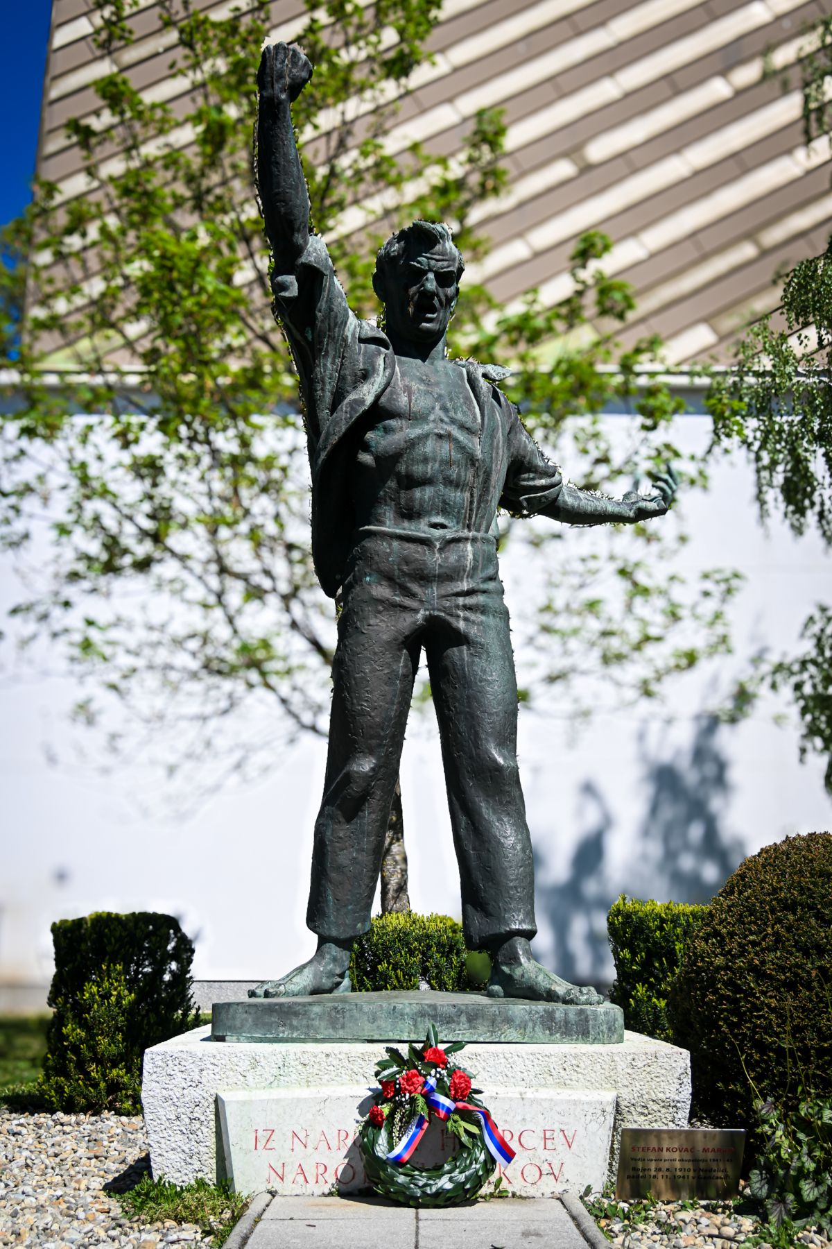 Župan Damjan Anželj in predsednica mestne organizacije združenja borcev za vrednote NOB Murska Sobota Bojanka Veren sta položila venec k spomeniku narodnega heroja Štefana Kovača.