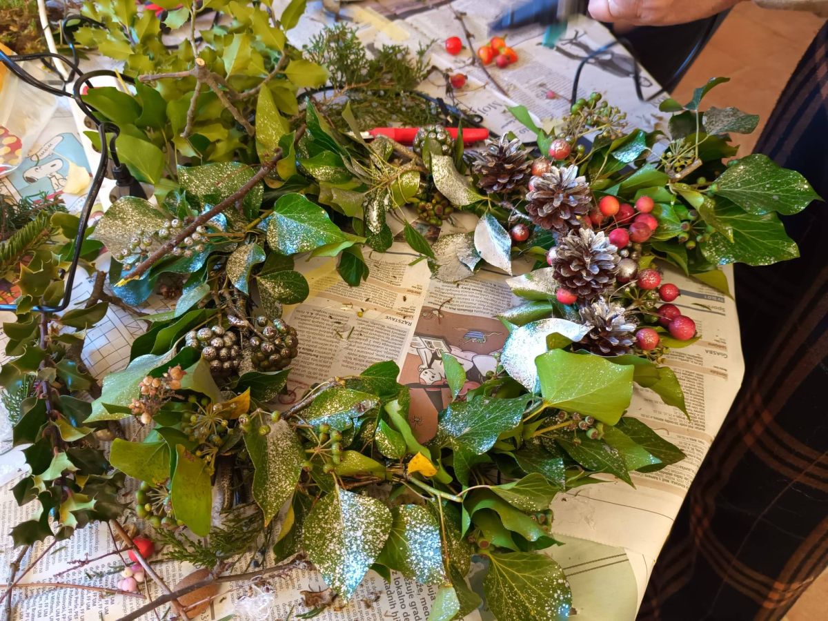Sončno sobotno dopoldne so izkoristili za ustvarjanje venčkov iz različnih zimzelenih vejic. Venčke so nato okrasili s storži, žirom in drugimi naravnimi okraski. Dogodek v muzeju je privabil obiskovalce vseh generacij, od najmlajših do najstarejših.