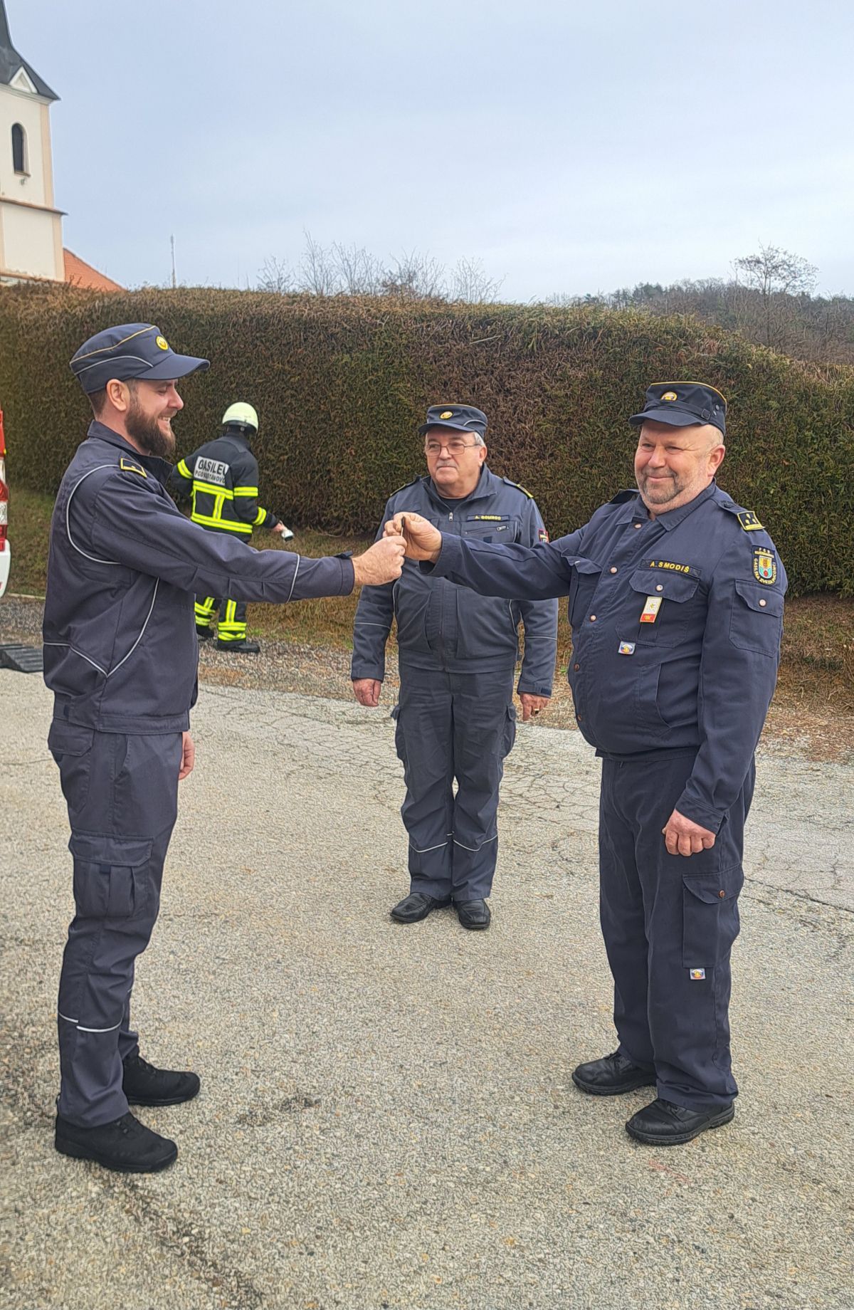 V kraj sta cisterno pripeljala predsednik PGD Murska Sobota Uroš Šebjanič in dolgoletni poveljnik Anton Gomboc, prevzela pa sta jo predsednik PGD Kuštanovci Aleksander Smodiš in poveljnik Benjamin Čer. Navzoči so bili tudi ostali člani društva, predstavniki Gasilske zveze Puconci in Občine Puconci, poveljnik gasilske regije Pomurje Matej Miholič ...