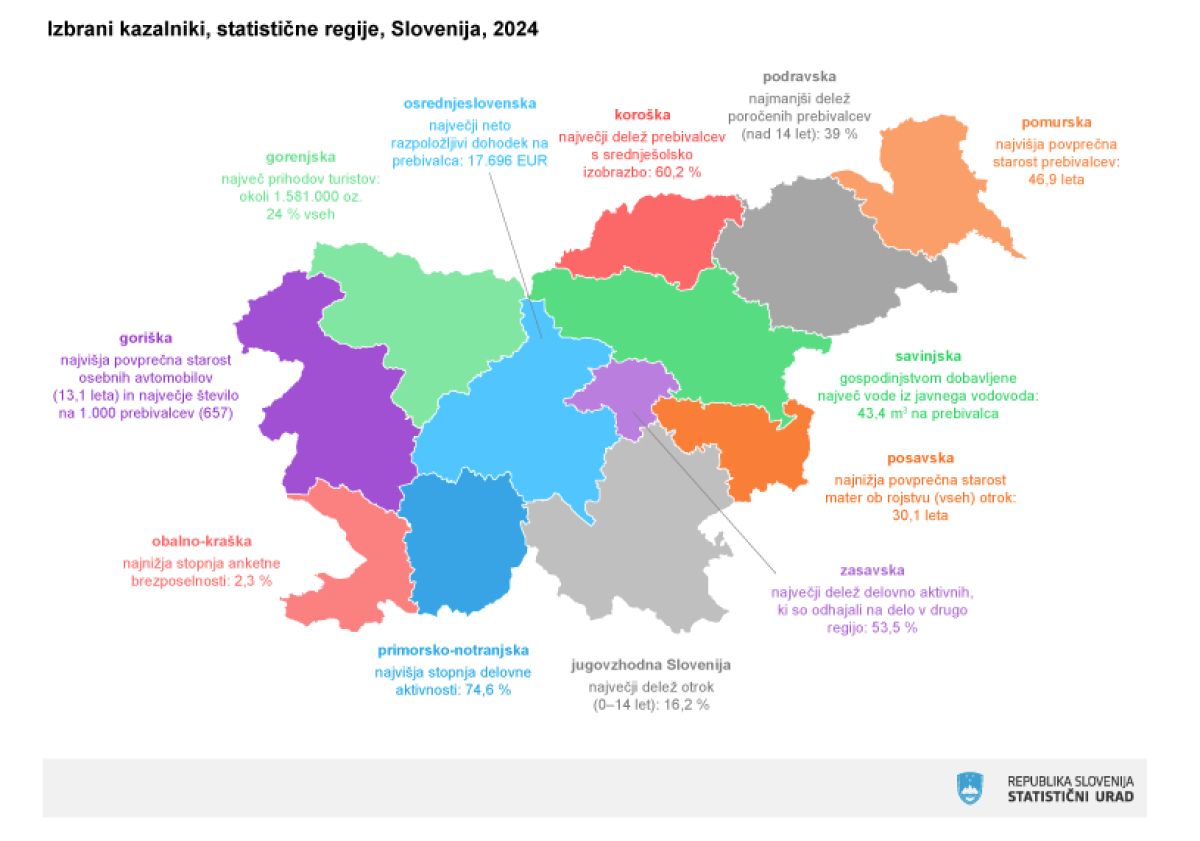 Surs je poiskal tudi podatke in kazalnike, po katerih so posamezne regije izstopale v letu 2024, med drugim lahko za pomursko regijo preberemo, da je bila najvišja povprečna starost prebivalca 46,9 let in je bila najvišja med vsemi regijami.