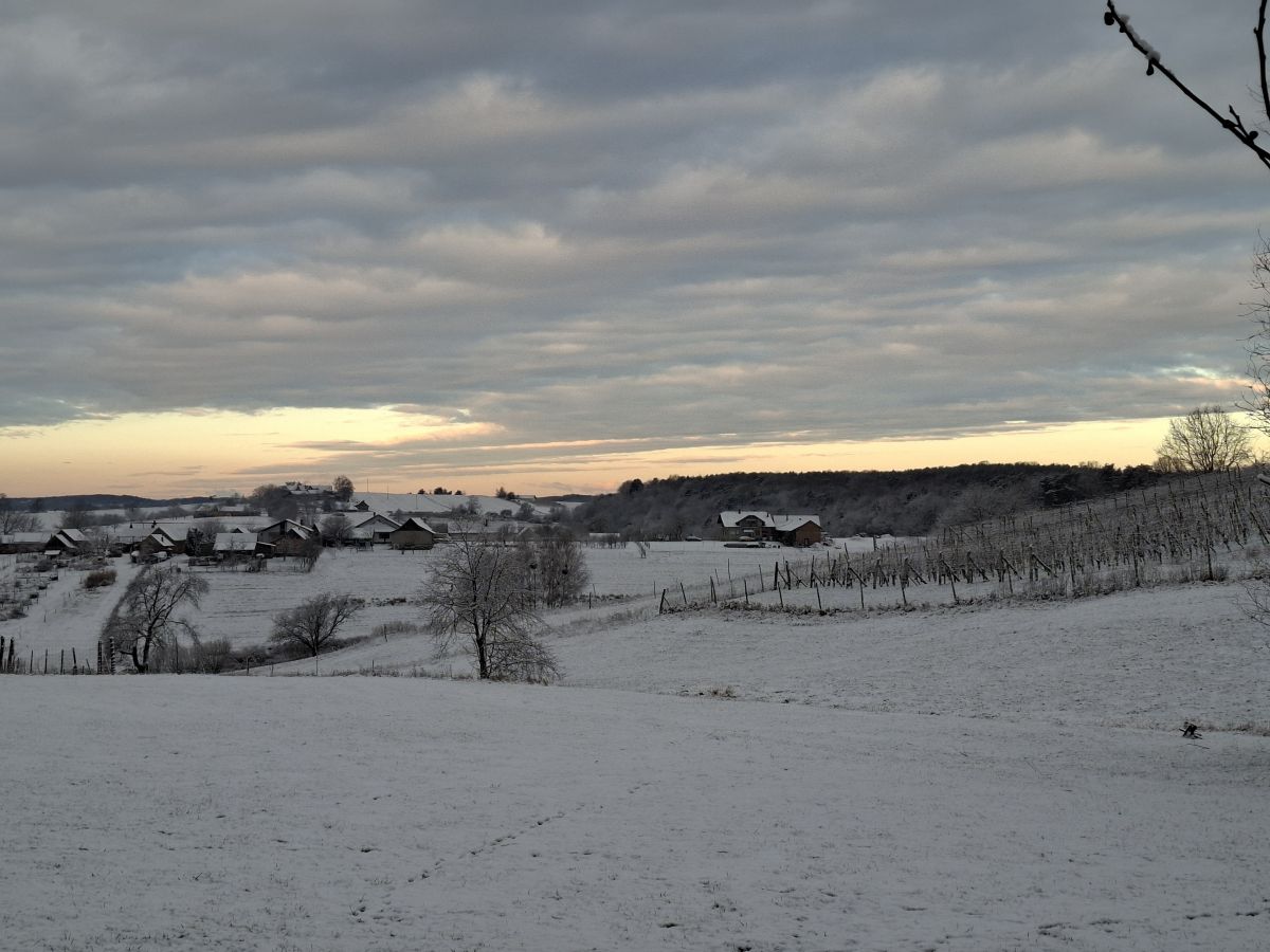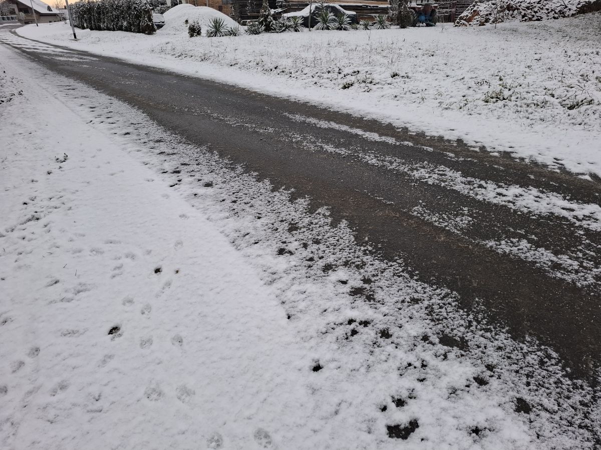 V delih Pomurja smo se prvo nedeljsko jutro v tem letu prebudili v pobeljeno pokrajino. Snežna odeja znaša le nekaj centimetrov, a je dovolj, da se sneg ponekod oprijema cestišč.