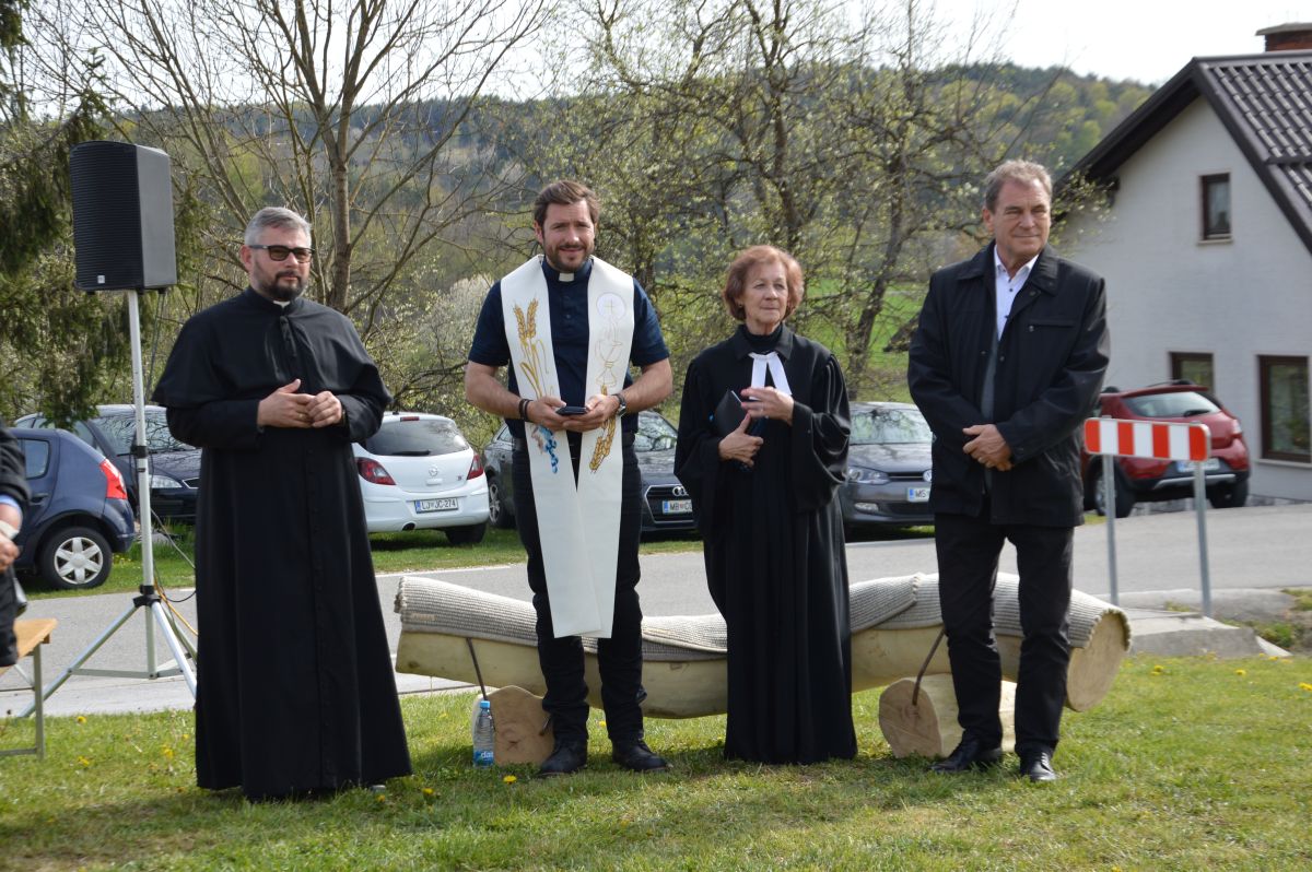 Nov križ, ki je znamenje povezanosti, vere in skupnosti, je v navzočnosti domačega župnika, duhovnice Jane Kerčmar ter superintendenta binkoštne cerkve Daniela Grabarja blagoslovil župnik Martin Golob, s katerim je nato potekal še pogovor, ki ga je vodila domačinka Mojca Škerlak.
