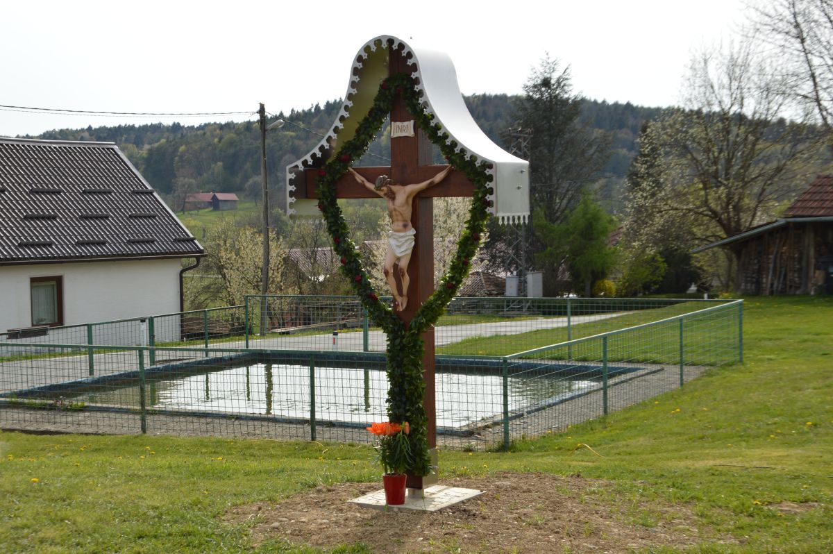 Les za križ je daroval eden od vaščanov, podobo Jezusa za križ pa je daroval župnik Horvat, ki je izdelal tudi ambon iz starega akacijevega lesa ter leseno klop.