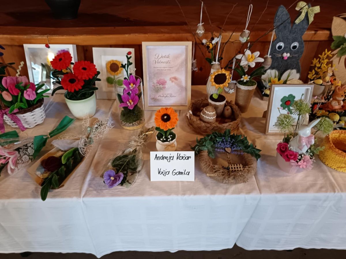 Obenem je bila na ogled pestra in raznolika razstava ročnih del na temo pomladi in bližajoče se velike noči, ki je bila na ogled ves konec tedna. Ideja za ta bogat dogodek se je porodila vodji tako imenovane košarice ročnih spretnosti, ki kot sekcija deluje v okviru Kulturno-umetniškega društva Jožef Košič Bogojina. »Sama sem s svojimi izdelki že sodelovala na tovrstnih razstavah drugod, potem pa se mi je porodila ideja, da bi kaj podobnega izvedli tudi pri nas. V občini in širše imamo ogromno posameznikov, ki nekaj delajo, ustvarjajo, ampak vsi ti izdelki nekako ostanejo skriti doma. Zdelo se mi je prav, da dobijo priložnost, da se predstavijo na razstavi,« je dejala Klavdija Koltaji, ki je poleg posameznikov iz moravskotopliške občine povabila tudi nekaj drugih iz bližnje okolice, člane likovne sekcije Likos, ki deluje pri KUD Štefan Kovač, v goste pa so s svojimi izdelki prišli tudi člani rezbarsko umetniškega društva Kungoški detli in člani rokodelske sekcije Unikat društva upokojencev iz Zgornje Kungote. Sodelovalo je tudi nekaj pravih rokodelcev, med njimi Marija Križanič iz Gančan s svojimi rožami iz kreppapirja, s katerimi je vpisana v register nesnovne kulturne dediščine.