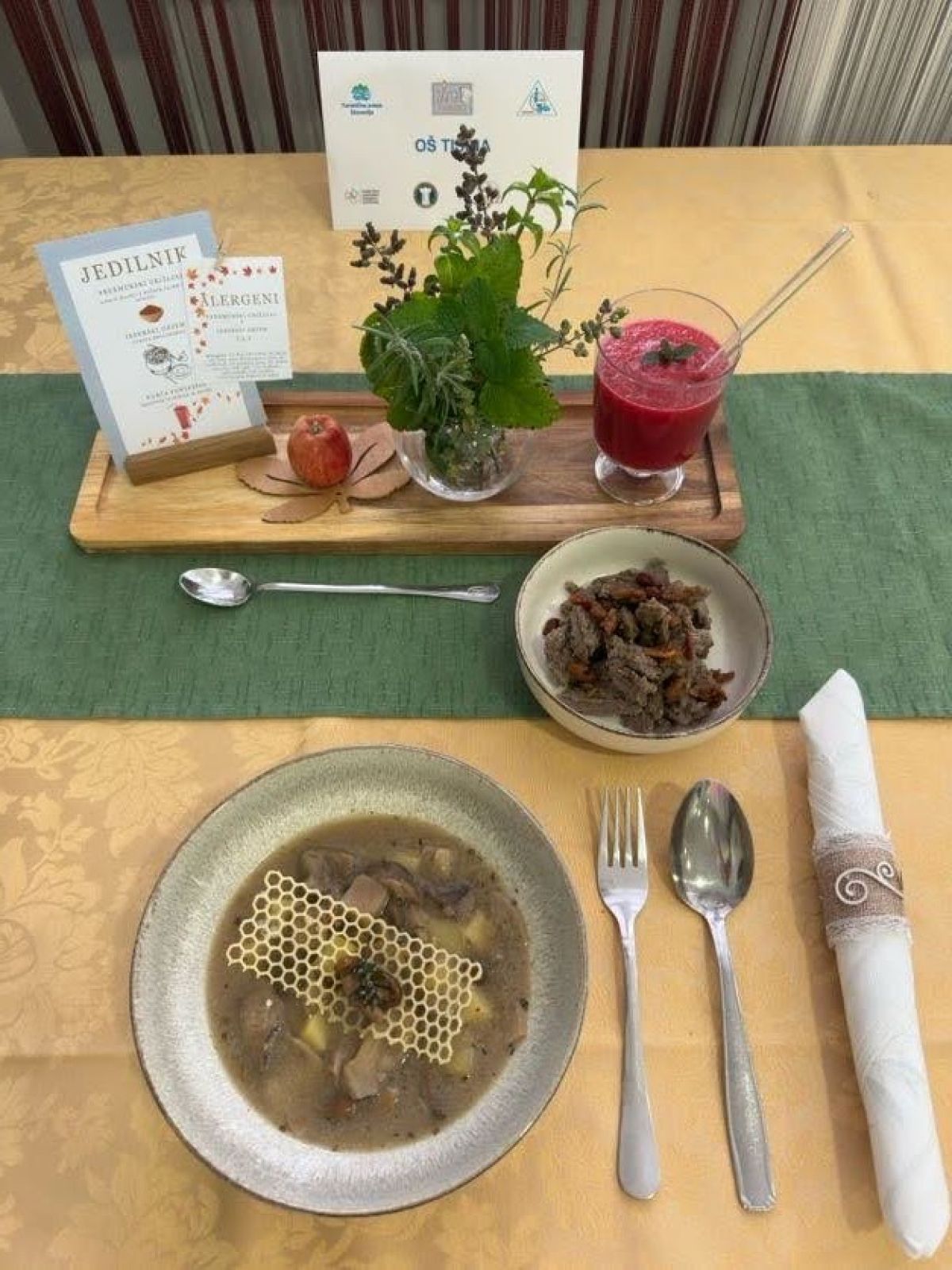 Osnovnošolke s Tišine so na državnem tekmovanju pripravljale jedi, ki so jih domiselno poimenovale. Tako so skuhale "prekmurski grižljaj" oziroma ajdove žgance s pridihom tradicije. Mehkim žgancem, zabeljenim z domačim bučnim oljem, so dodale hrustljave ocvirke. Z "jesenskim objemom" so ustvarile gobovo enolončnico, polno gozdnih arom, združile so namreč sveže in sušene gozdne gobe, ki so jih zalile z jušno osnovo in jim dodale še krompir. "Rdeča fantazija" pa je predstavljala smuti. Zanj so dekleta skuhala hruške v pesinem soku, razredčenem z vodo, odišavljenem s cimetom in vanilijevim sladkorjem, posebej so skuhala tudi jabolka, vse pa so nato zmiksale v aromatično sadno zmes.