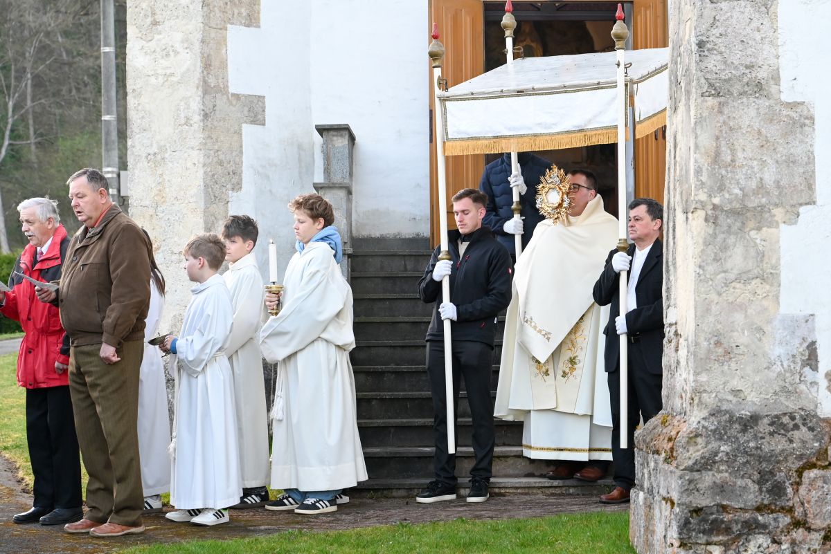Vstajenjsko procesijo so danes ob 7. uri zjutraj pripravili tudi v župniji Grad. Številni verniki so se z Najsvetejšim odpravili okrog župnijske cerkve, nato pa sodelovali pri sveti maši, ki jo je daroval domači župnik Aljaž Baša. Na procesiji in sveti maši so sodelovali tudi gasilci in lovci.